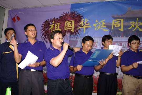 9月22日,全體三圣人歡聚一堂,同慶祖國華誕,共迎中秋佳節。感人至深的手舞《感恩的心》、詼諧幽默的小品《三圣家庭》、激情澎湃的詩(shī)朗誦《我的祖國》、獨樹(shù)一幟的三句半《話(huà)說(shuō)三圣》以及相聲、快板書(shū)等一個(gè)個(gè)三圣人自編自演的節目集中體現了三圣大家庭的企業(yè)文化精髓,同時(shí)表達了對祖國母親的深深祝福。由三圣人自己點(diǎn)燃放飛的69盞祝愿燈將聯(lián)歡會(huì )推向了高潮,大家祝愿三圣事業(yè)六六大順,三圣好運長(cháng)長(cháng)久久。董事長(cháng)帶領(lǐng)高管團隊合唱的一曲《朋友》充分彰顯了三圣管理層的超強凝聚力和戰斗力。晚會(huì )在大合唱《同一首歌》的歌聲中圓滿(mǎn)結束。