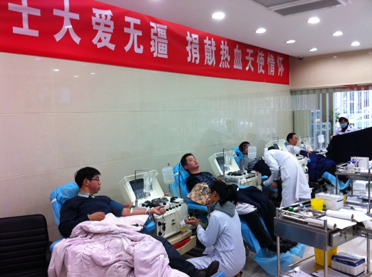 得知第一批獻血未成之后,員工中迅速自發(fā)組織第二批獻血員工,設計部戴尚權、狄陽(yáng),工程部陳健生,市場(chǎng)部周元明等五位員工在愛(ài)心基金會(huì )委員長(cháng)魯沈彬的帶領(lǐng)之下,再次急赴獻血點(diǎn)。難能可貴的是,設計部狄陽(yáng)、工程部的陳健生,進(jìn)入公司時(shí)間不長(cháng),與趙亞?wèn)|尚未謀面,但是,他們卻急人所急,積極響應倡議,毫不猶豫地參加了獻血。通過(guò)檢驗,最終魯沈彬、戴尚權、狄陽(yáng)、周元明等四位同事符合捐獻成分血的要求,積極完成了獻血活動(dòng),為趙亞?wèn)|提供了寶貴的四份用血指標。