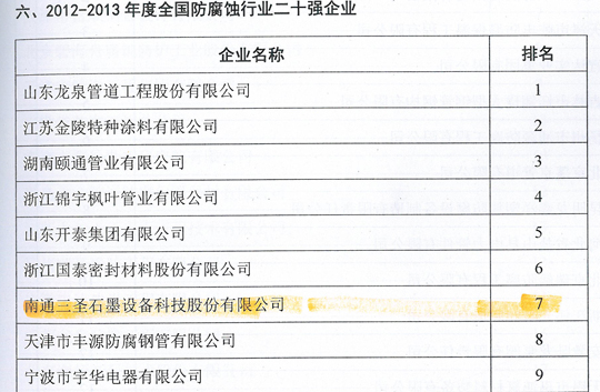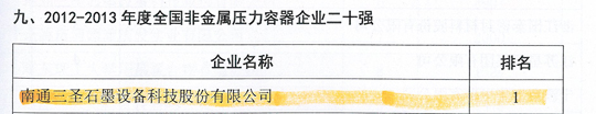 在剛剛閉幕的第五屆中國國際腐蝕控制大會(huì )上,南通三圣石墨設備科技股份有限公司憑借其優(yōu)異的業(yè)績(jì)榮登三大榜單,分別是:"2012-2013年度全國防腐蝕行業(yè)二十強企業(yè)"(排名第7位);"2012-2013年度全國非金屬壓力容器企業(yè)二十強"(排名第1位);"2012-2013年度全國防腐蝕行業(yè)外貿出口企業(yè)二十強"(排名第6位)。