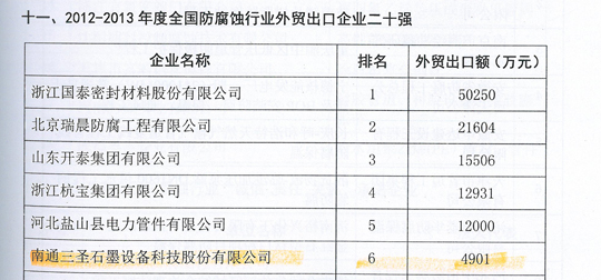 三圣成為行業(yè)內同時(shí)榮登 “防腐蝕行業(yè)二十強”、“非金屬壓力容器企業(yè)二十強”、“防腐蝕行業(yè)外貿出口二十強”三大榜單的企業(yè)